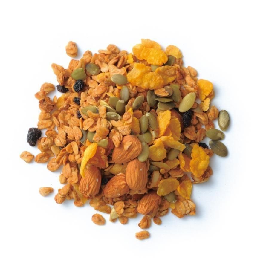 有機栽培のレモン果汁をオートミールと有機コーンフレークにたっぷりと染み込ませ、柑橘系ピールを合わせて焼き上げた爽やかなグラノーラ。濃厚なはちみつが、自然な甘味をプラスしています。ヨーグルトを使用したサラダやチーズケーキのトッピングにも、しっかりと甘味と酸味が効いたシトラスサワーグラノーラを合わせてみてください。